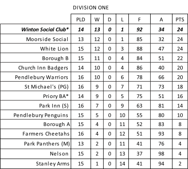 * 2 points deducted - non attendance of league meeting |
