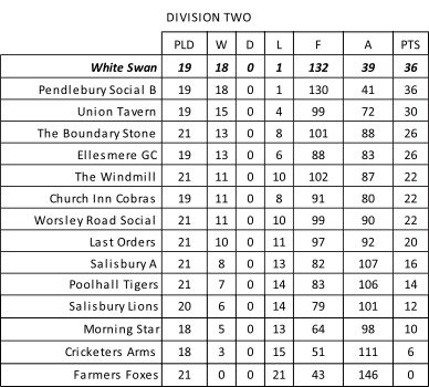 Mike Bray (170) Michael Coghlan (155) Phil Ward (142) Alex Taylor (134) Matthew Grant (129) : Dean Critchley (121) : Liam Green (120) : Mark Taylor (120) Daniel Edge (118) : Jay Harrison (117) : Terrance Watson (117) : Paul Rigby (116) : Simon Fensome (116) : Ryan Bevan (115) : Luke Wakefield (112) : Daryl Cartledge (110) : Liam Blakemore (110) Callum Hughes (107) : James Headford (107) : Astyn Driver (106) : Dan McKerrel (100) : George Coyle (100) Eddie Kilfoyle (95) |